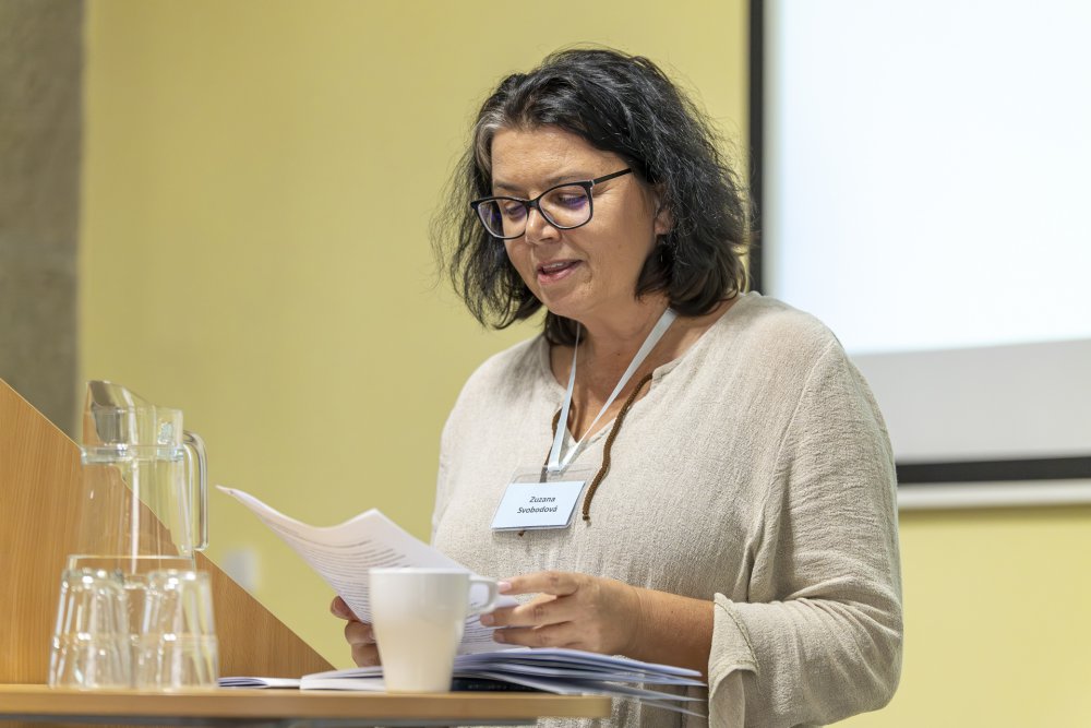 Zuzana Svobodová při svém příspěvku Vidět a dohlížet, posoudit a určit, jednat a utvářet